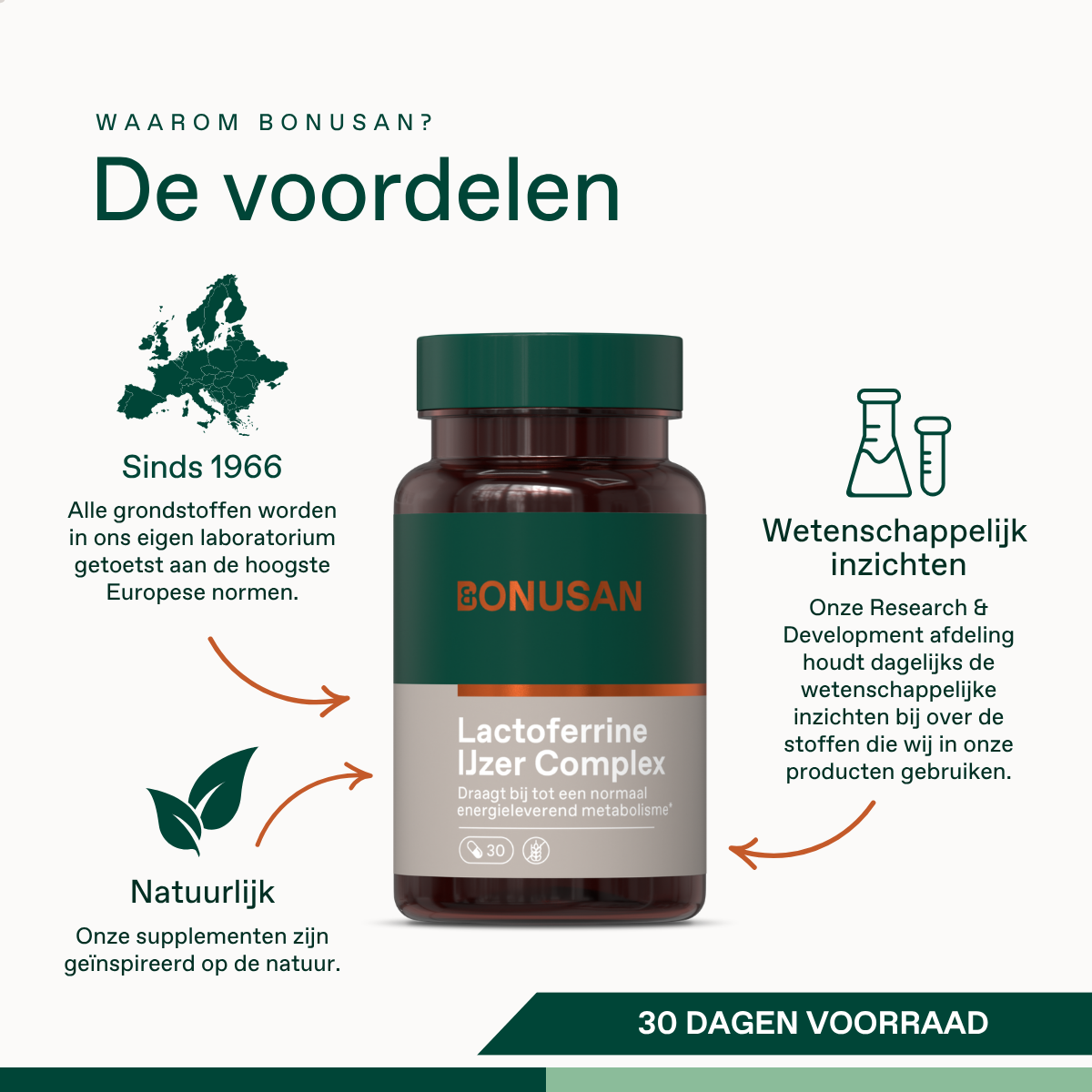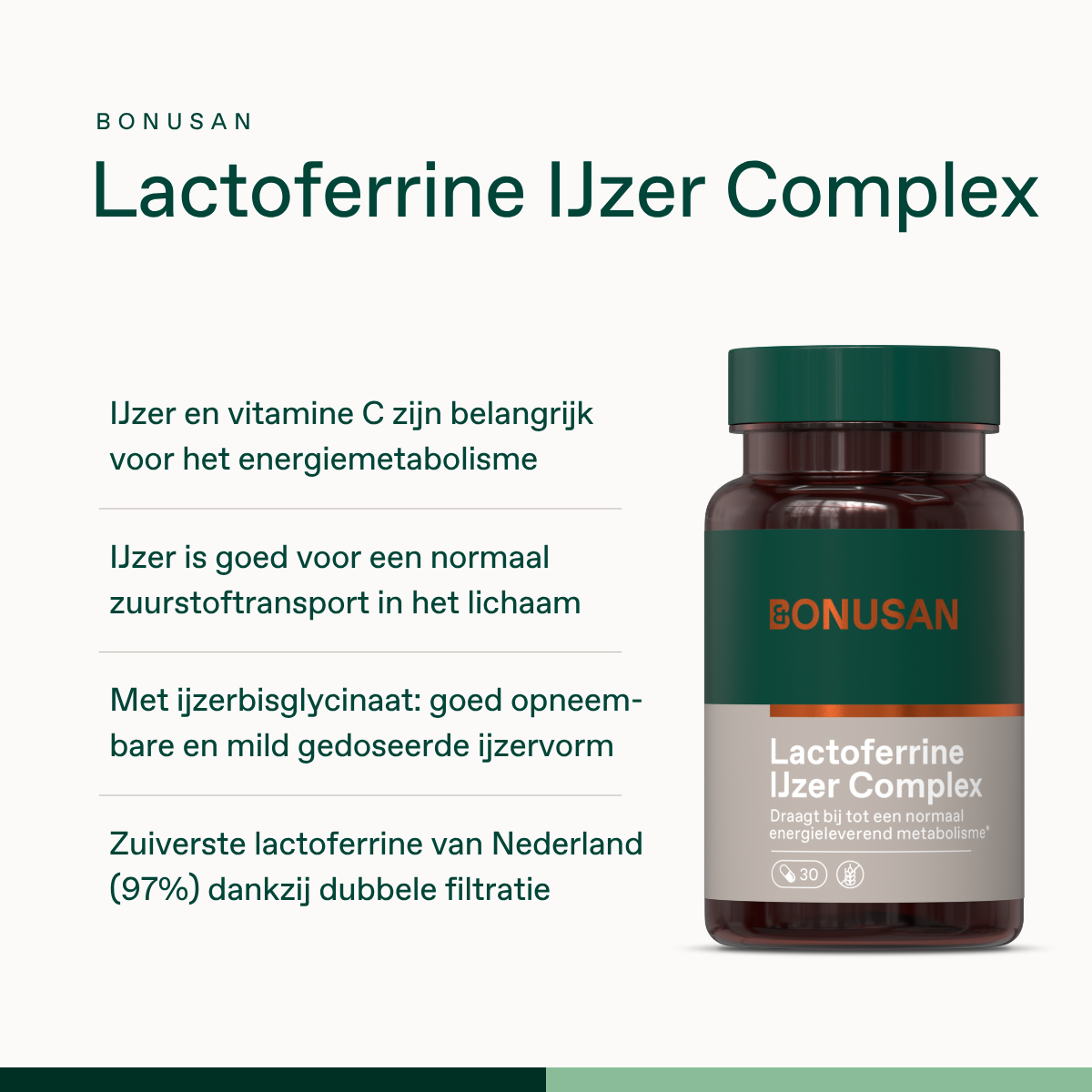 - Ontwikkeld door gezondheidsprofessionals: Bonusan Lactoferrine IJzer Complex werd ontwikkeld op basis van wetenschappelijk onderzoek.