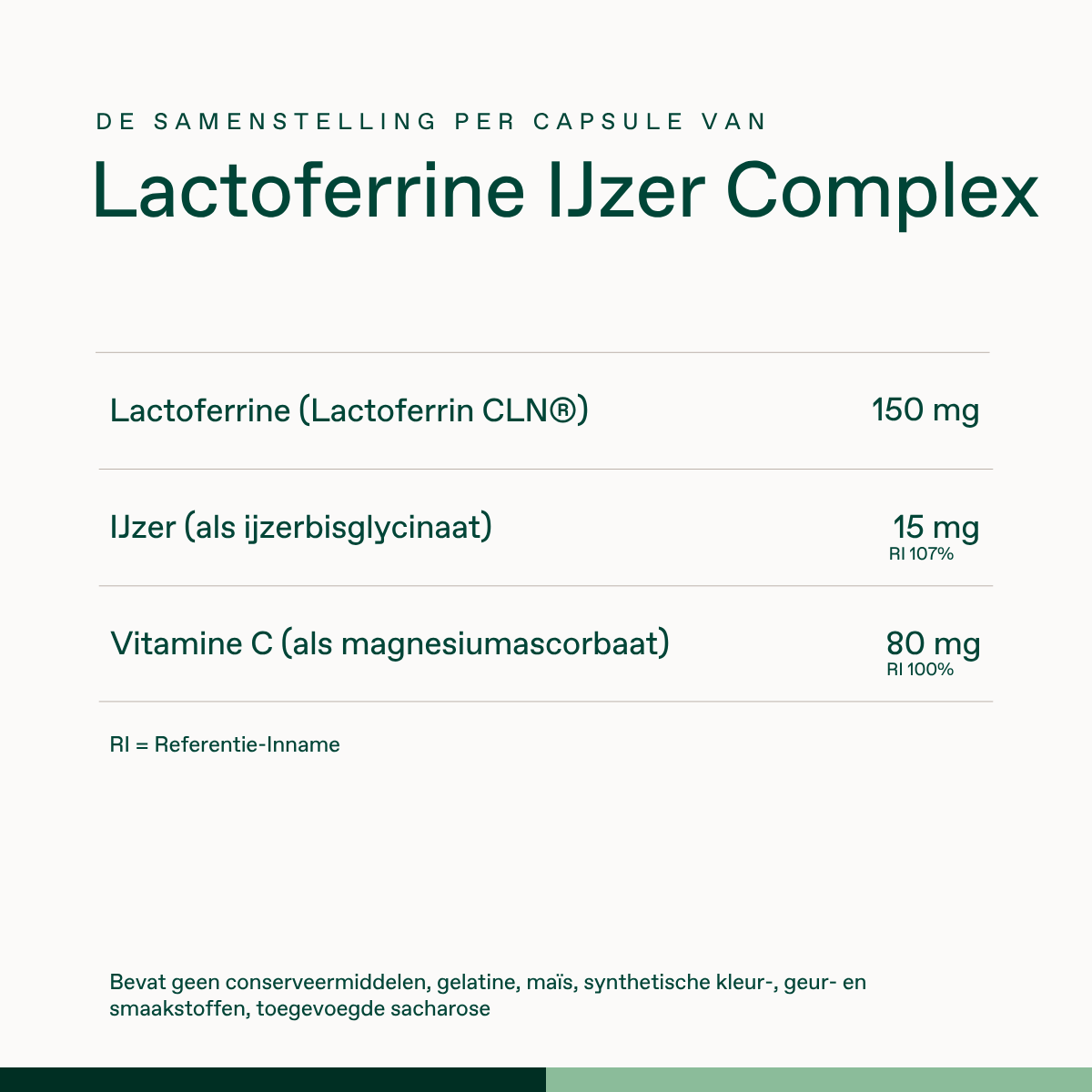 - Zorgvuldig gedoseerd: met 150 mg lactoferrine CLN®, 15 mg ijzer en 80mg vitamine C