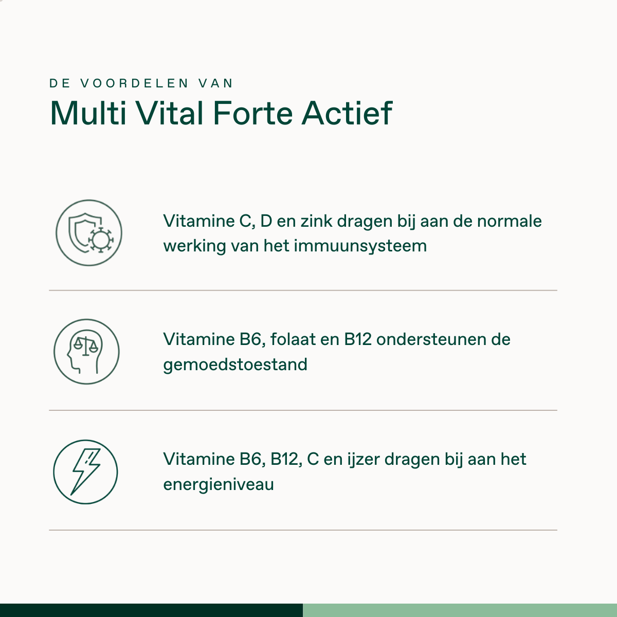 - Vitamine C, B6, B12 en foliumzuur in de actieve vorm