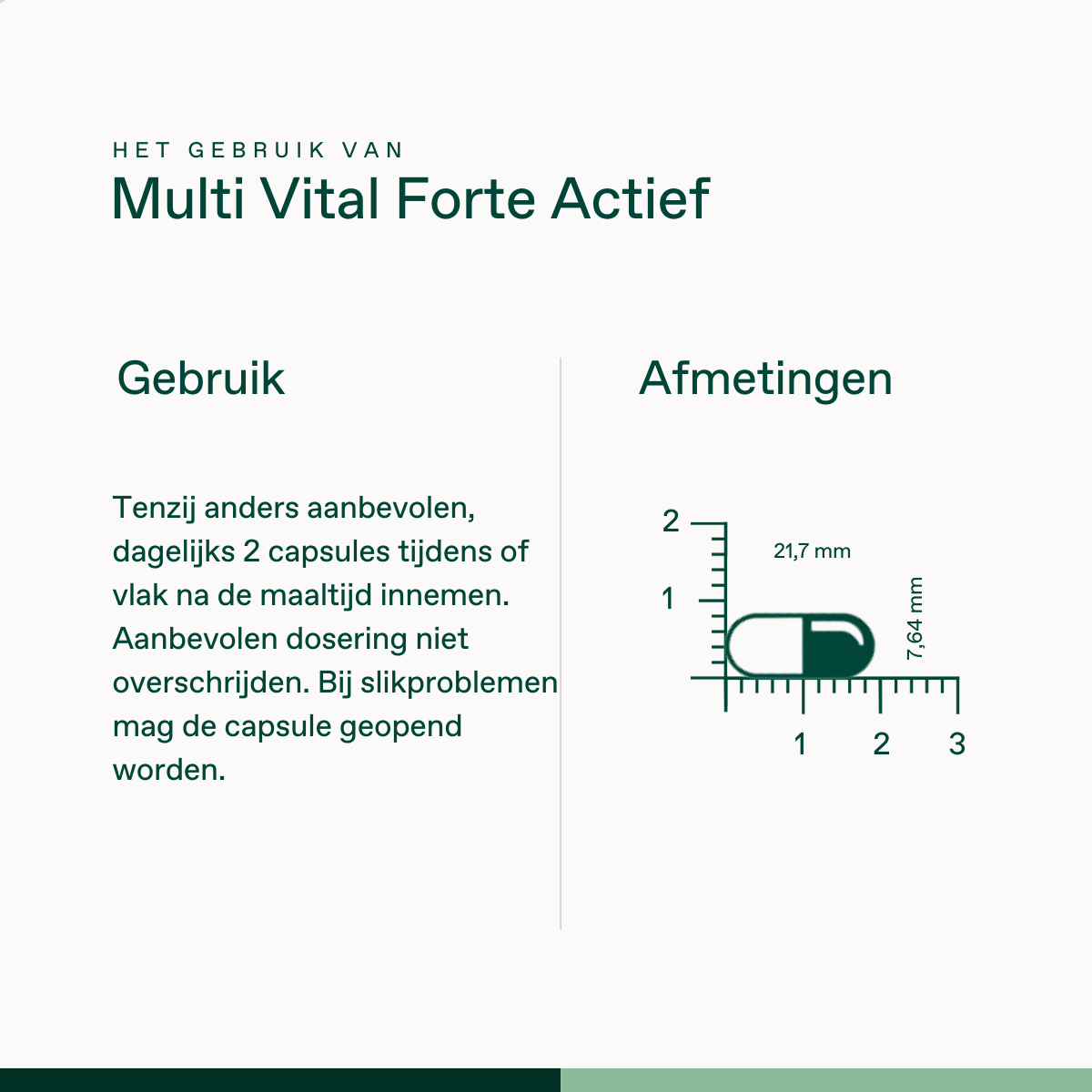 Dagelijks 2 capsules tijdens of vlak na de maaltijd innemen. Aanbevolen dosering niet overschrijden. Bij slikproblemen mag de capsule geopend worden.